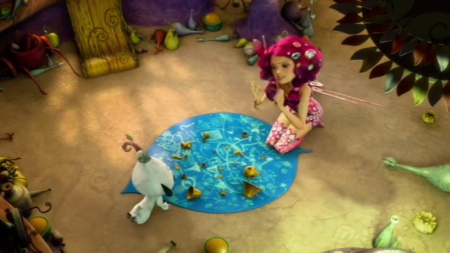 In The Trumptus, Mia and Vincent went to a shack, which is a secondary house for Vincent (while in boarding school). After Mia asked Vincent to leave, she discovered the new oracle, and transported herself to Centopia. She found Lyria, who was trying to reach an apple. Soon, she saw that the the elves are celebrating for the creation of the Trumptus.